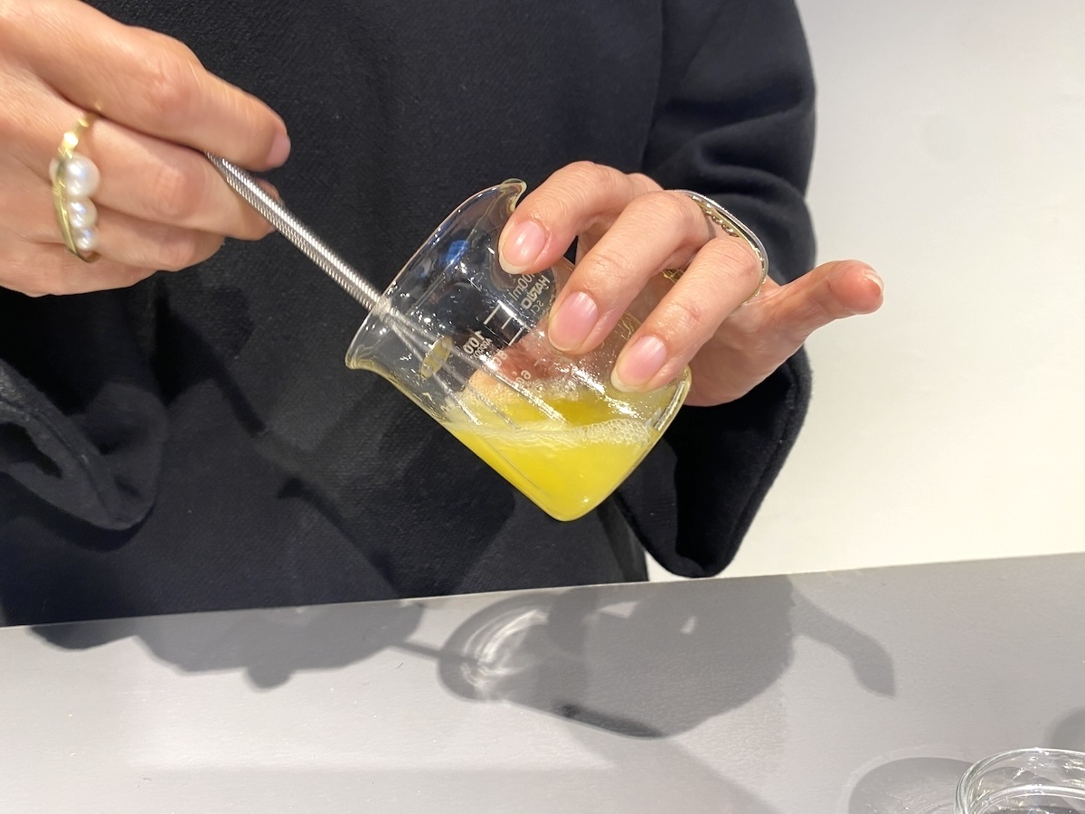 その後、どの香りを一番感じられるようにするかを調整する工程に移ります。筆者はオレンジブラッドが強く香る仕様にしました。そしてできあがったのが、脳を活性化させるような香り。日々、活動的でいたい自分にはぴったりで、仕事始めに使えば作業スピードにブーストをかけてくれそうだと感じました。