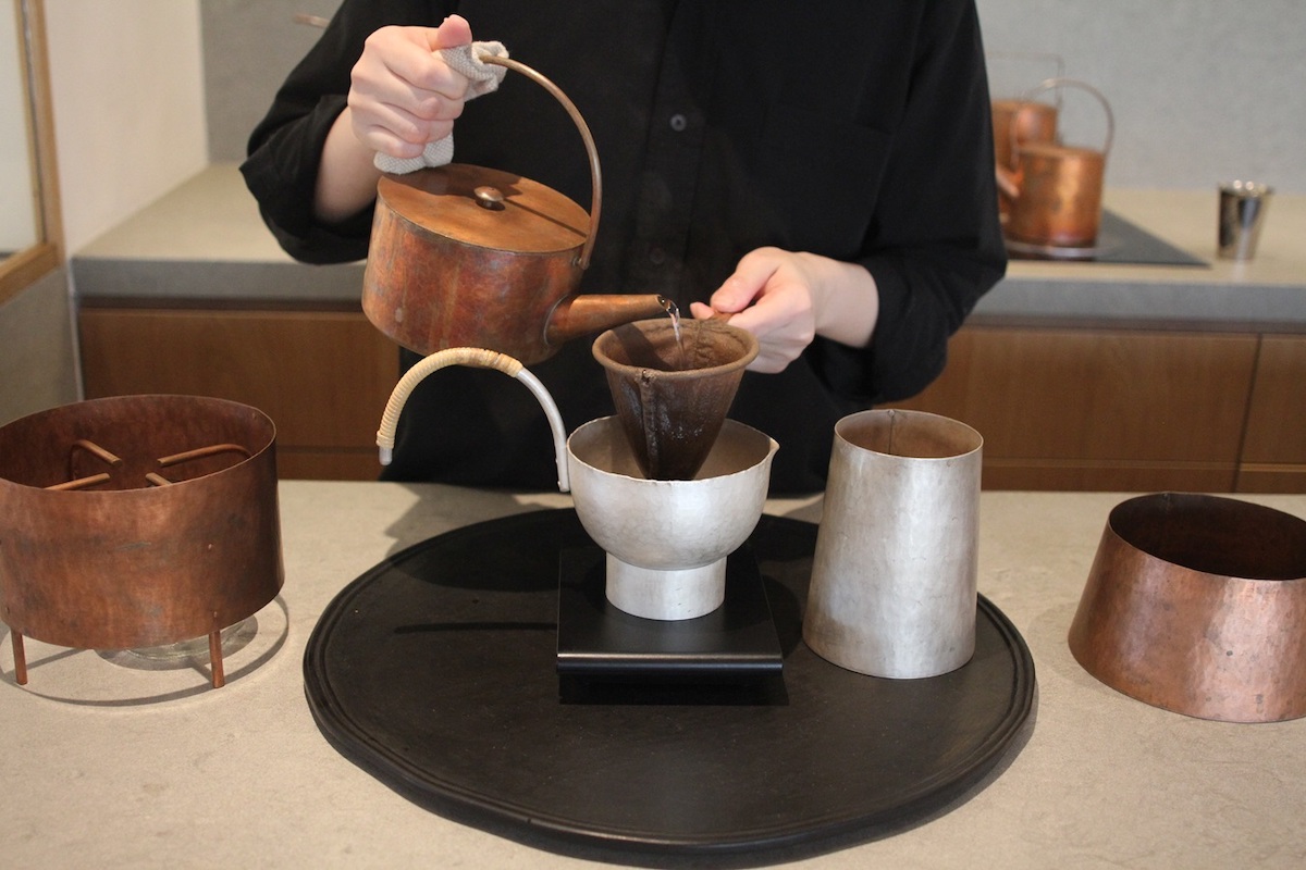 コーヒーや紅茶は金工家・中村友美さんが手がけた道具を使っていれるのが「翠門亭」のこだわりポイント。