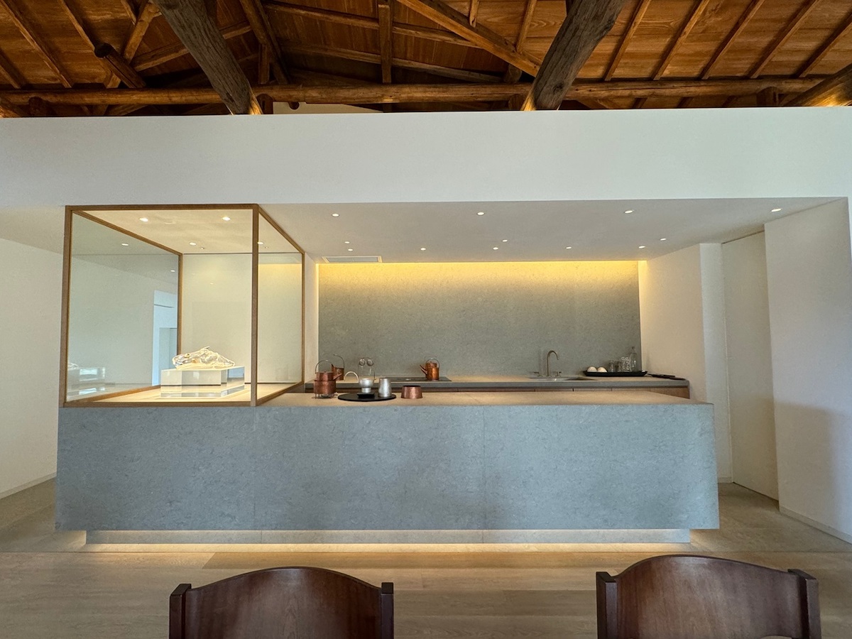 宿は1日1組限定ですが、併設のサロンでは13~17時まで喫茶、17~20時までは一品料理とお酒が楽しめます。客室同様、スタイリッシュな店内からは中庭を望むこともでき、ゆっくりと落ち着いたひとときを過ごせます。