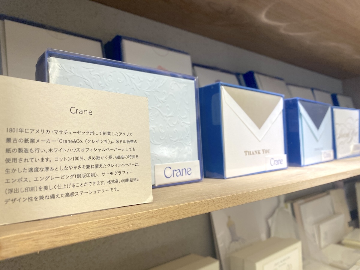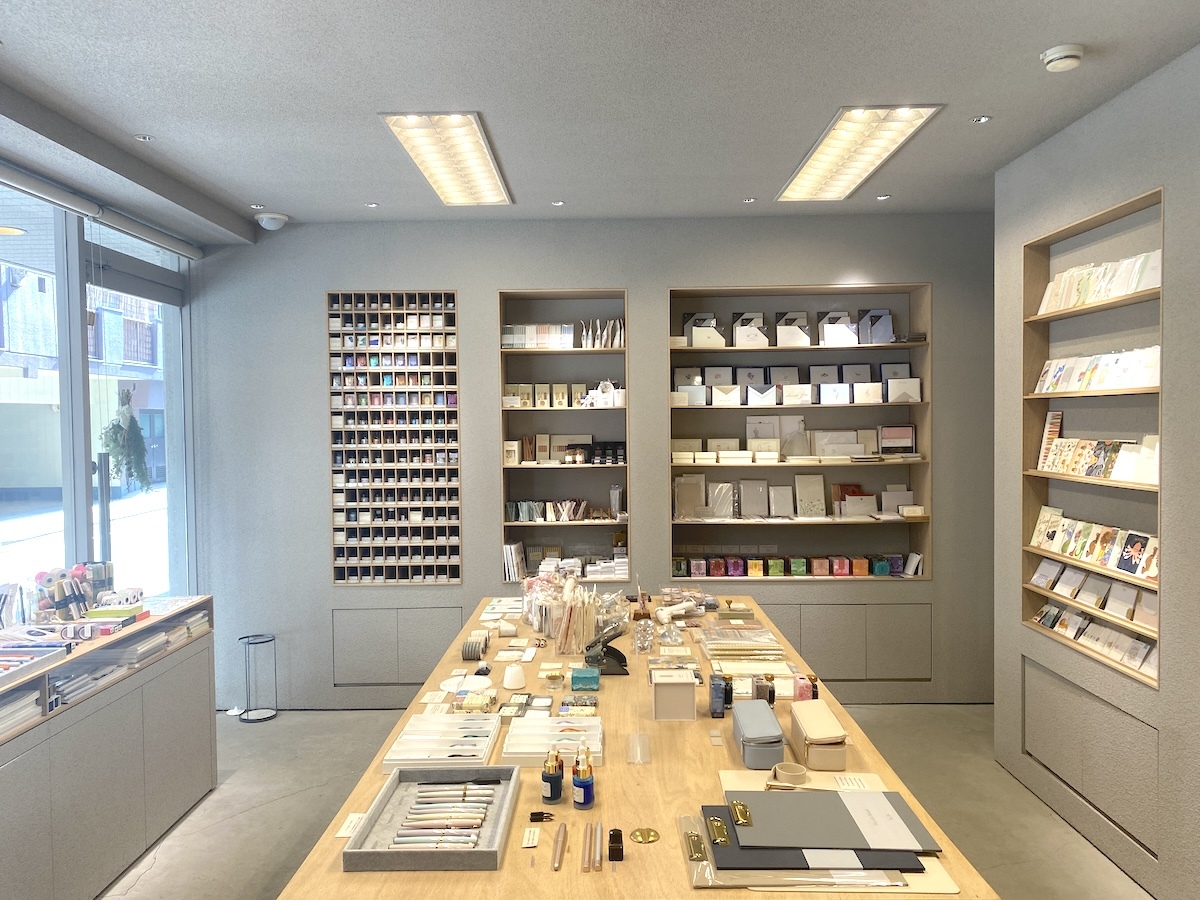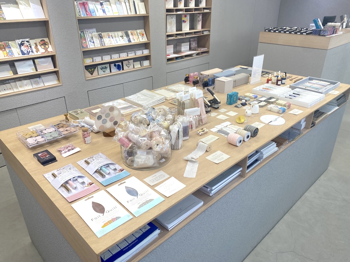 ペンやインク、カード、シーリングスタンプなどが並んでいて、ベーシックなものから個性的なものまでテイストはさまざま。ここに来れば手書きに必要なアイテムがいろいろ揃えられます。