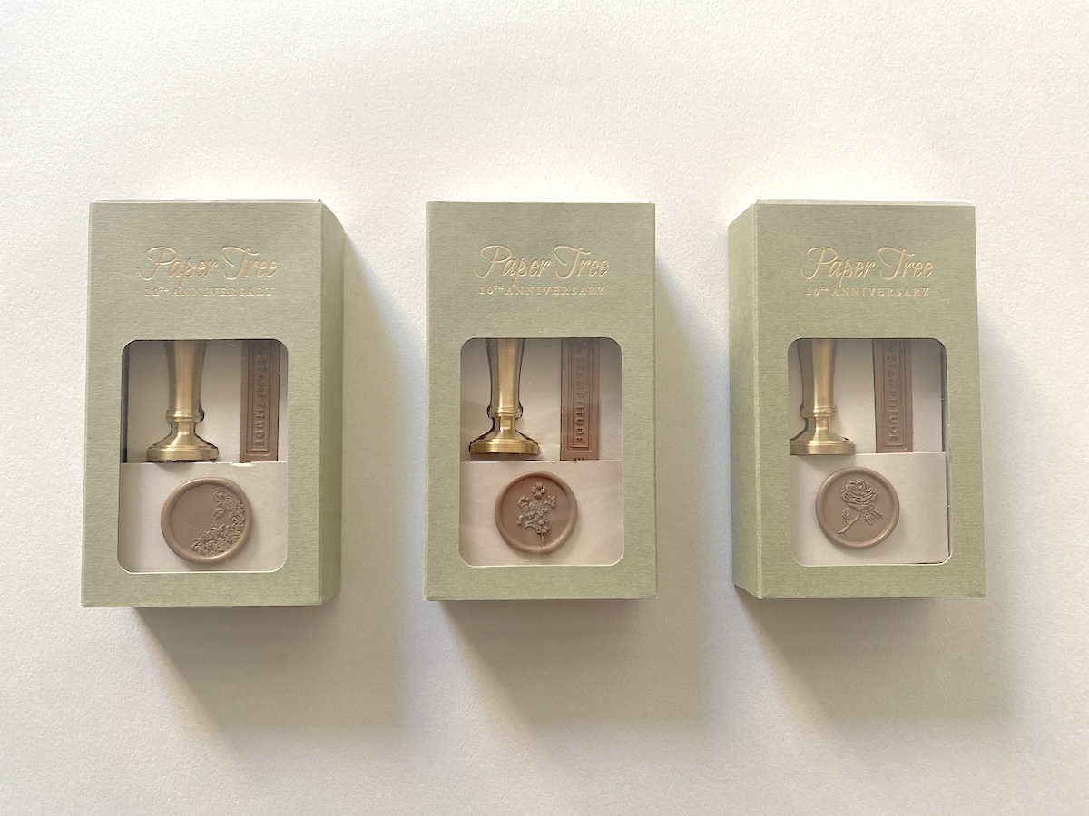 「Paper Tree 10th Anniversary Sealing Stamp」は「Paper Tree」オリジナルのシーリングスタンプ。スタンプの柄は15種類とバリエーション豊富で、花や植物などボタニカルな柄を中心に展開されています。