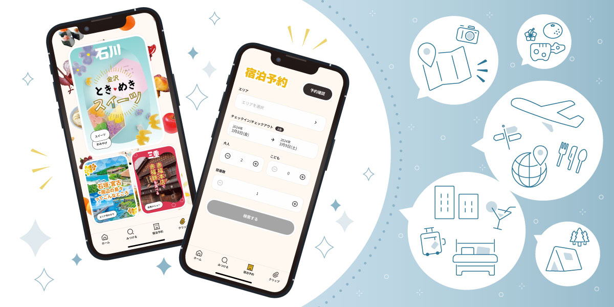 アプリの機能はほかにも充実!JTBが運営する宿泊予約サイト「るるぶトラベル」と連携したホテル・旅館予約が利用できるので、旅の計画をそのまま実行に移せます!また、宿泊セール情報、予約時に使える各種クーポン情報が出ることもあるので、お得な情報も見逃せません。さらに、よく見るページ、後ですぐに見返したい記事をコレクションできるクリップ機能もあるので、今すぐに旅行の予定がなくても、いつか行ってみたい場所ややってみたいことのToDoリストをストックしておけますね。