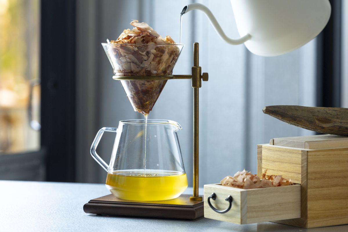 スイーツやセイボリーのほか、飲むだしも一緒に提供してくれます。だしソムリエの資格をもつスタッフが、ハンドドリップで丁寧にいれてくれるだしは格別。今年は新たに、だしソムリエのサポートを得ながら、自分好みのだしを見つけることができるコーナーも登場します。