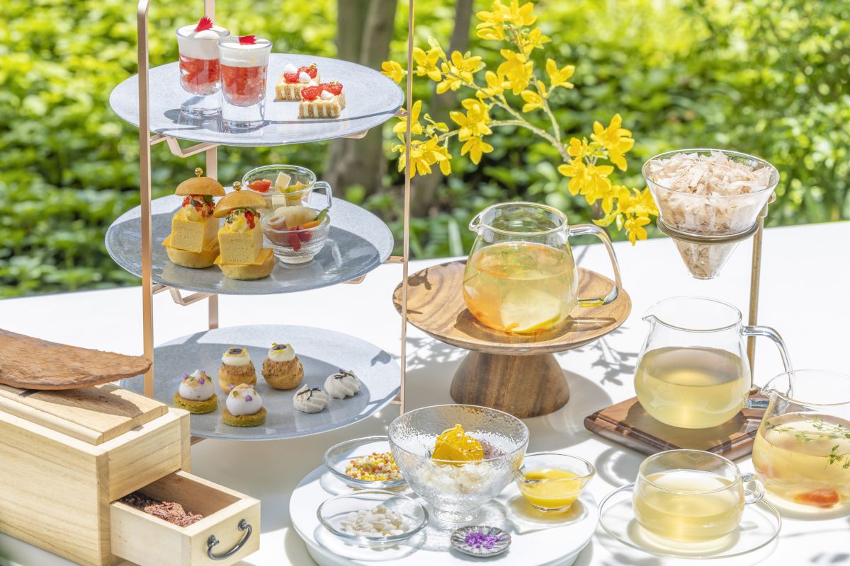 ホテルの敷地の半分以上、約7600㎡を誇るみやぐりんは、春になると⾊とりどりの花が咲き始め、⾊彩豊かな空間に。春の陽気に包まれながら、贅沢なティータイムを過ごすことができます。