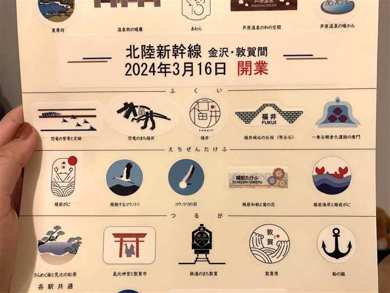 福井県の魅力をモチーフにした衝突防止シールも貼られています。モチーフがシールになった記念品をいただきました。これらは鉄道・運輸機構職員のオリジナルシールだそう。ひと目で魅力が伝わるシンプルさが可愛いです。