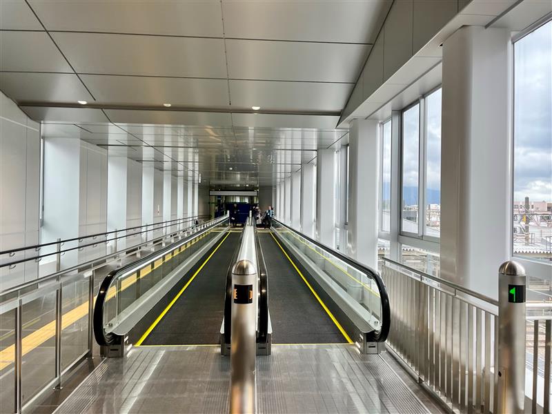在来線駅舎への連絡通路には、動く歩道があります。これは福井県初となる動く歩道そう!