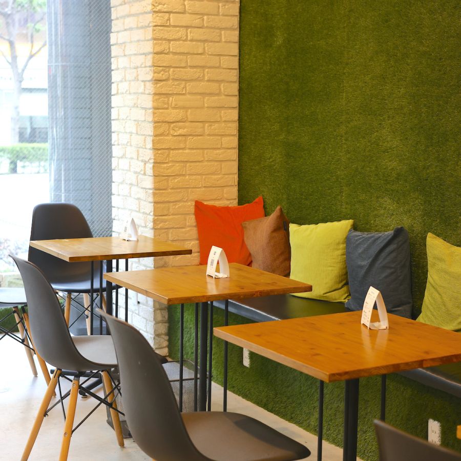1人でも過ごしやすい、2名掛けテーブルメインのカフェ空間。