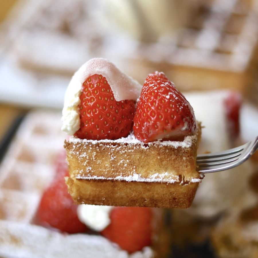苺大福とブリュッセルワッフルの国境を超えたコラボレーション、ぜひ体験いただきたい所存。