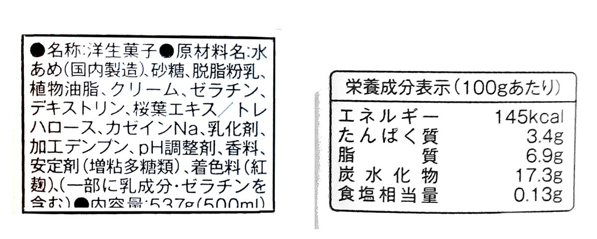 全容量は537gですが、100g当たりのカロリーは145kcalです。