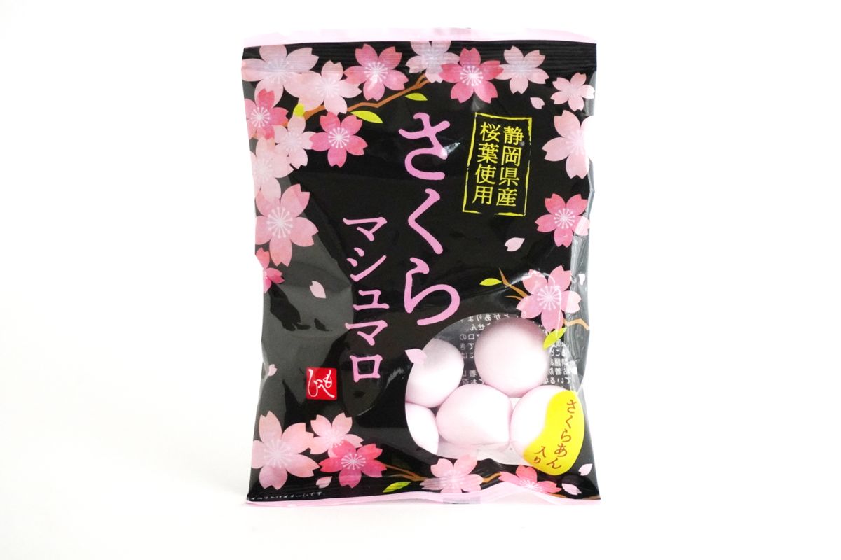 3番目にご紹介するのは、静岡県産桜葉使用の「もへじ さくらマシュマロ」です。夜桜をイメージさせるパッケージが、きれいですね。