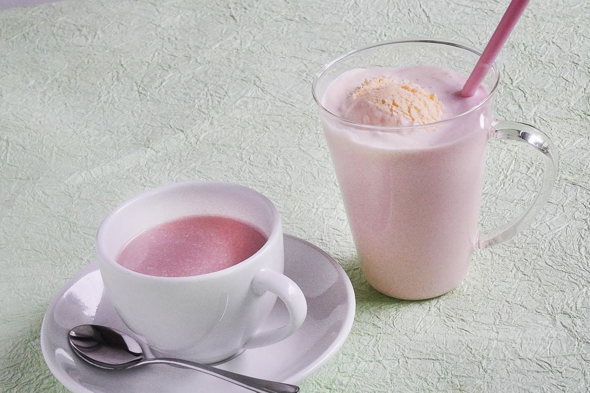 不思議なことにお湯を注ぐと、粉末のときよりピンク色が濃くなり、カップのなかが桜色に!