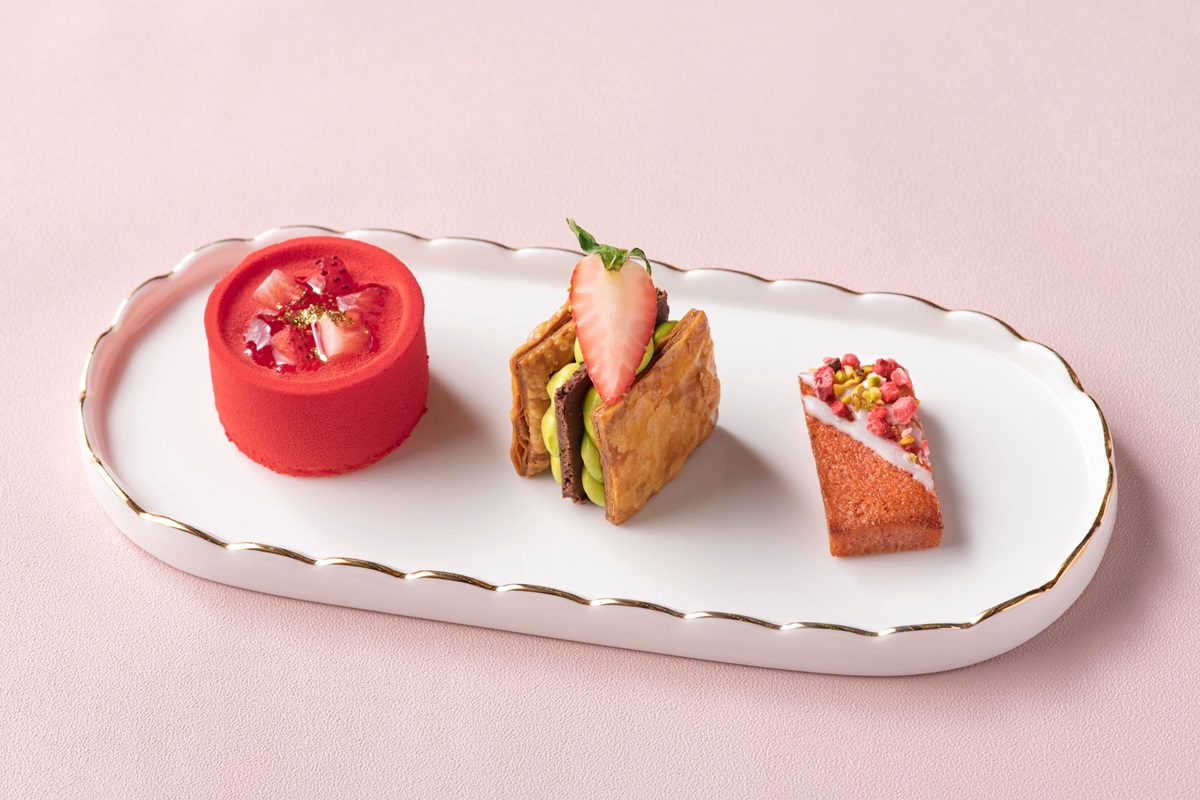 「ストロベリー&ピスタチオミルフィーユ」(写真中央)