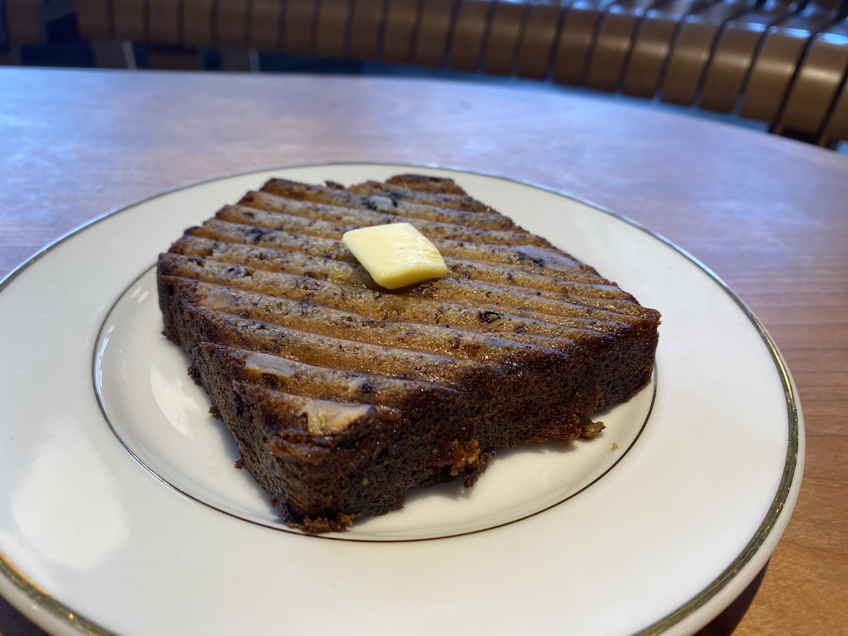 続いて紹介するのは「バナナブレッド」550円。ひと口食べると口いっぱいにバナナの風味が広がります。生地にクルミが入っているので、コリコリと食感も楽しい!バターを溶かしながら少しずつ食べ進めてみて。