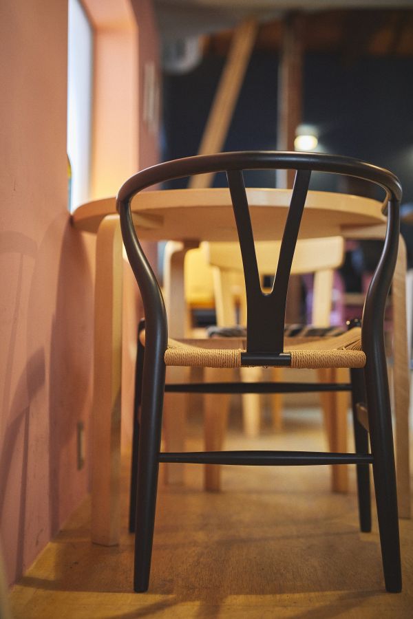 「ハンス・J・ウェグナー」のYチェアは、色違いでニューヨーク限定カラーもあり、家具好きにはたまりません。「良いものに惹かれる」とオーナーの古田島 善之さん。
