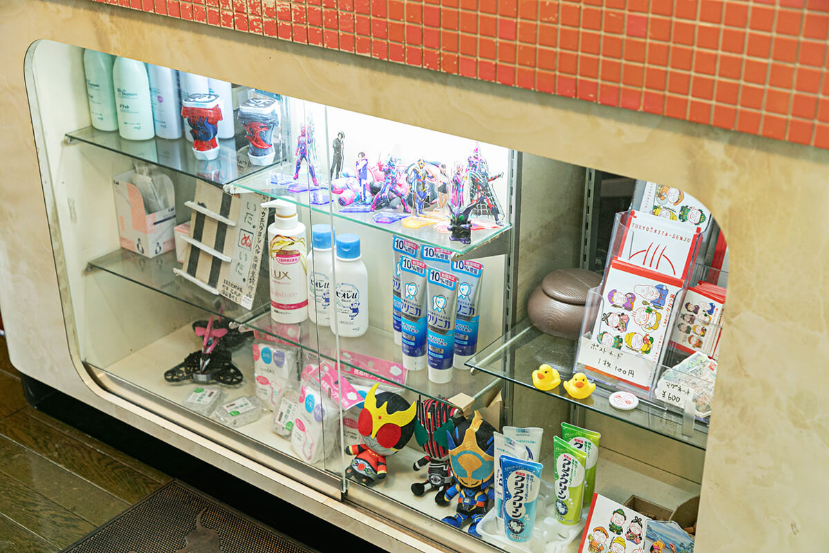 番台では入浴にまつわる備品が販売されています。思い立ってふらりと訪れたときは、1回分のシャンプー・コンディショナー・ボディソープ・タオルがセットになった「手ぶらセット」130円が便利。