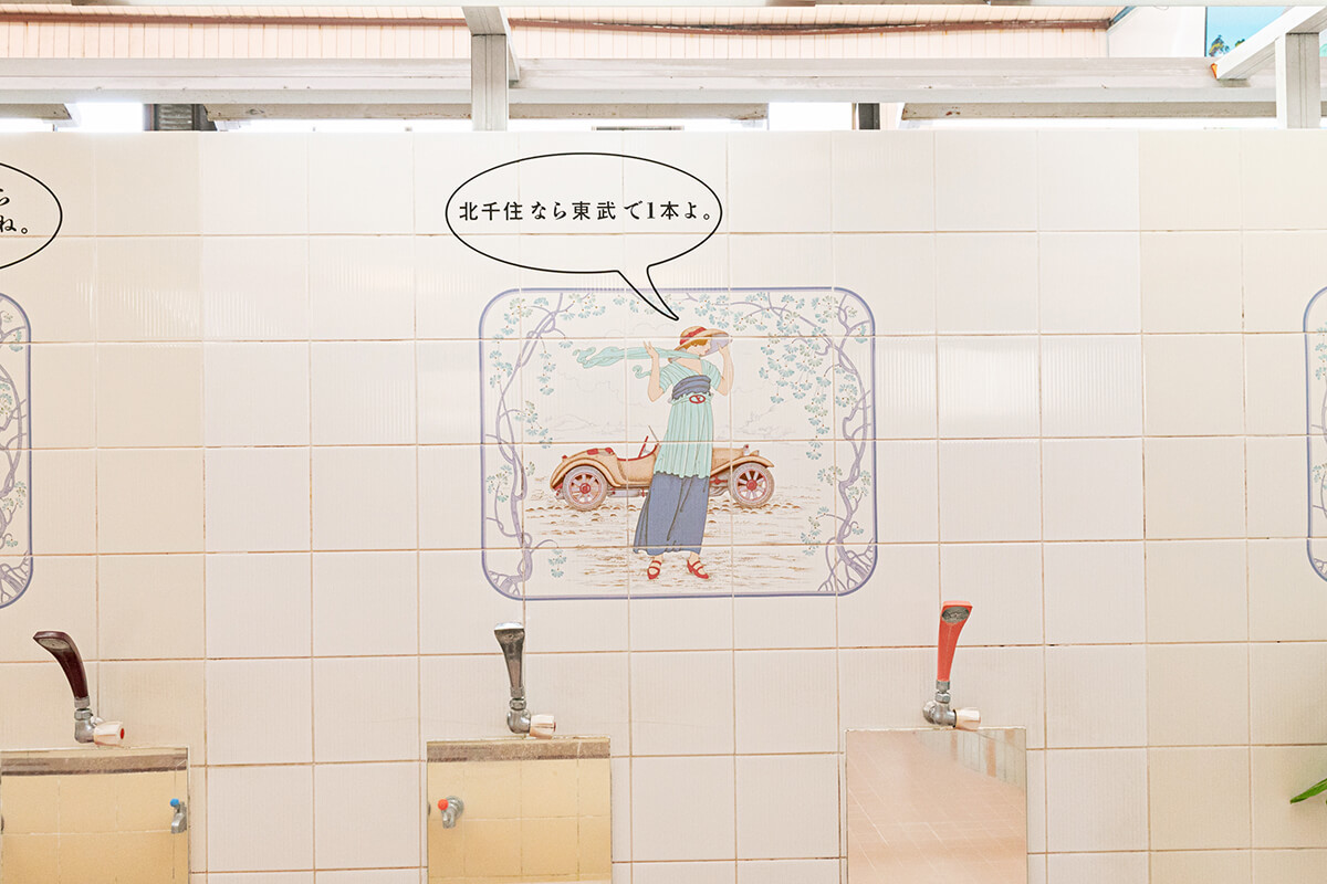 レトロでかわいらしいタイルの色使いもポイント。さらに、女湯のタイルには、イベントで使われたイラストが描かれています。「タカラ湯」ではイベントも多く行われています。イベントごとのスケジュールは、随時SNSでチェックを。