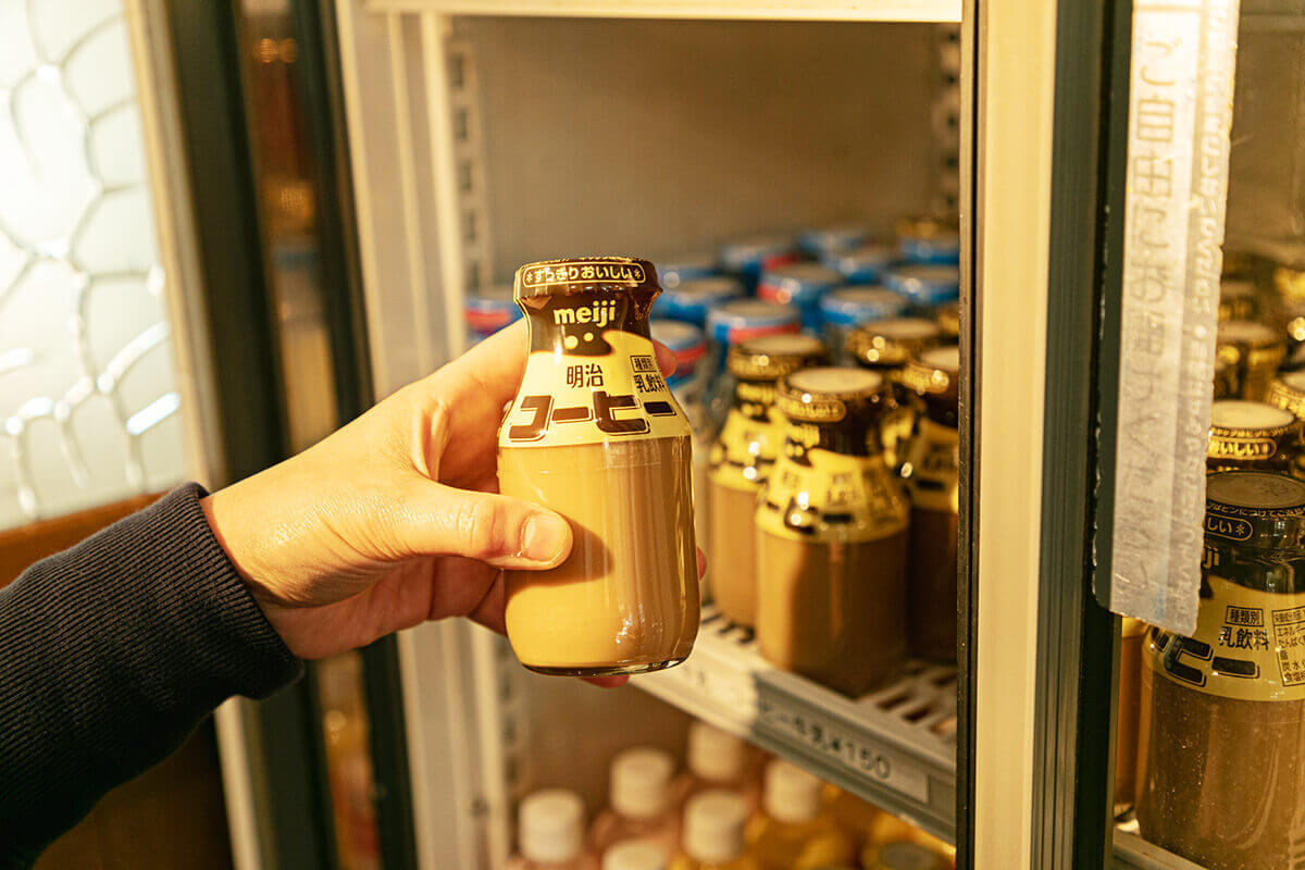 やっぱり風呂上がりはコーヒー牛乳でしょ!ということで、こちら。好きなドリンクを選んで、番台でお会計をします。写真左に写るすりガラスも昭和レトロな雰囲気です。
