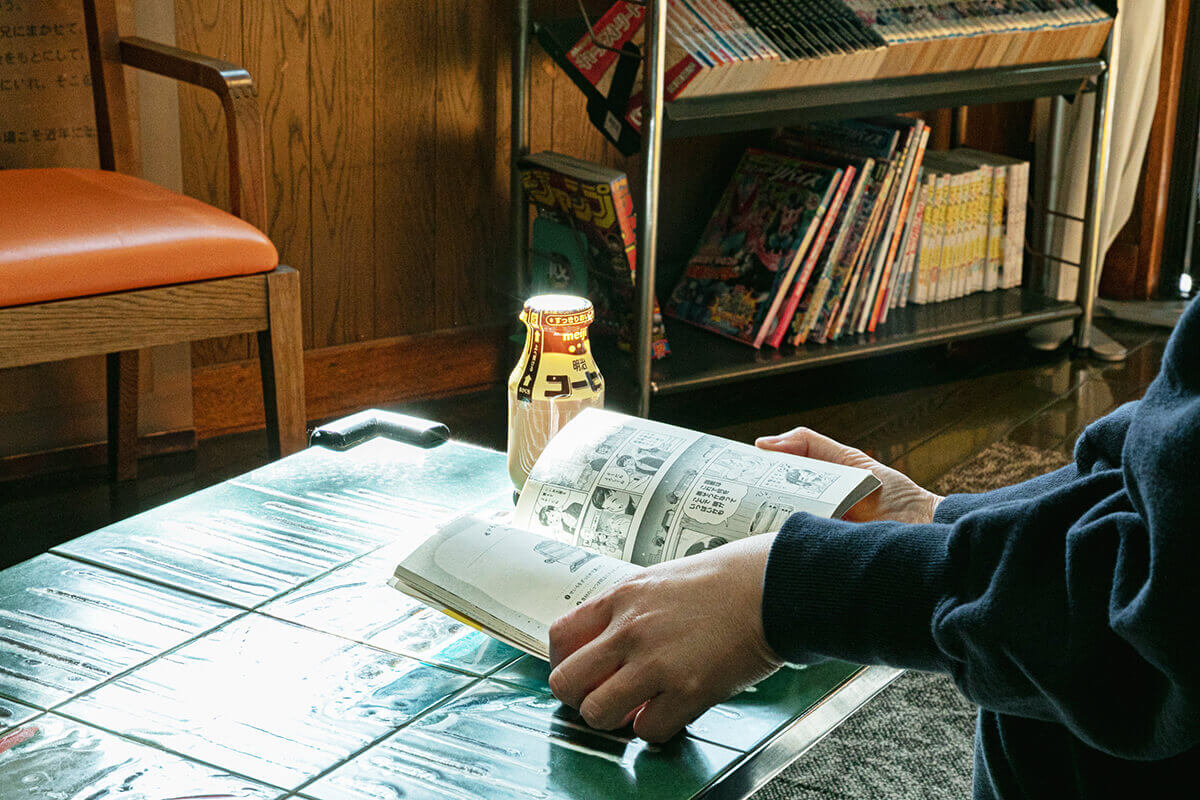 ととのったら、休憩室でコーヒー牛乳とマンガでのんびりくつろぐ