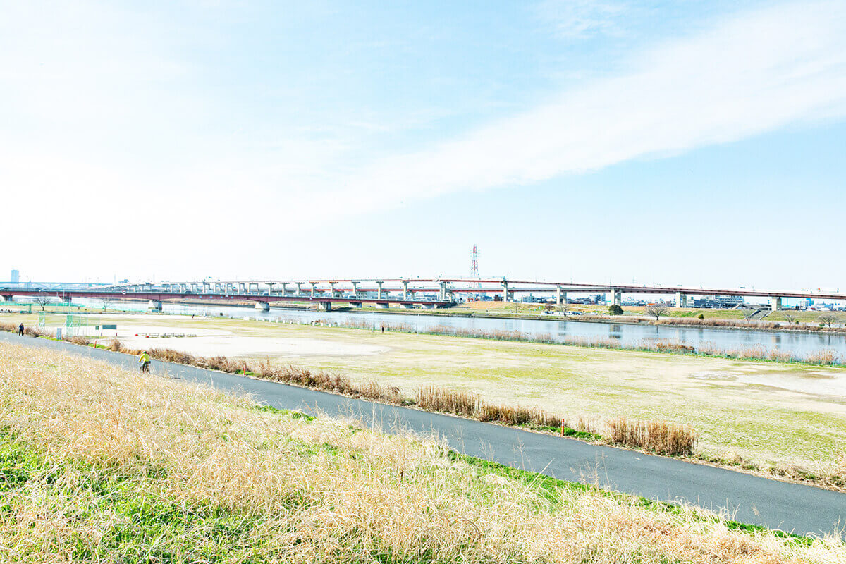 せっかくだから、駅まで寄り道をしてから帰りましょう。「タカラ湯」から荒川土手まではすぐ。荒川土手といえば、ドラマ『3年B組金八先生』のロケ地として使われていることでも有名です。風呂上がりのぽかぽかした体に、川沿いに吹く風が気持ちいい!