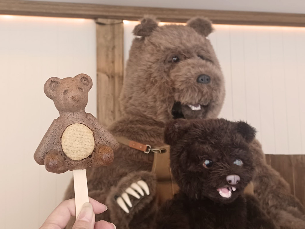 単体はもちろん、動くクマのロボットと一緒に撮影するとより映えるクマ型ドーナツ。食べさせているかのような写真もかわいいのでおすすめです♪