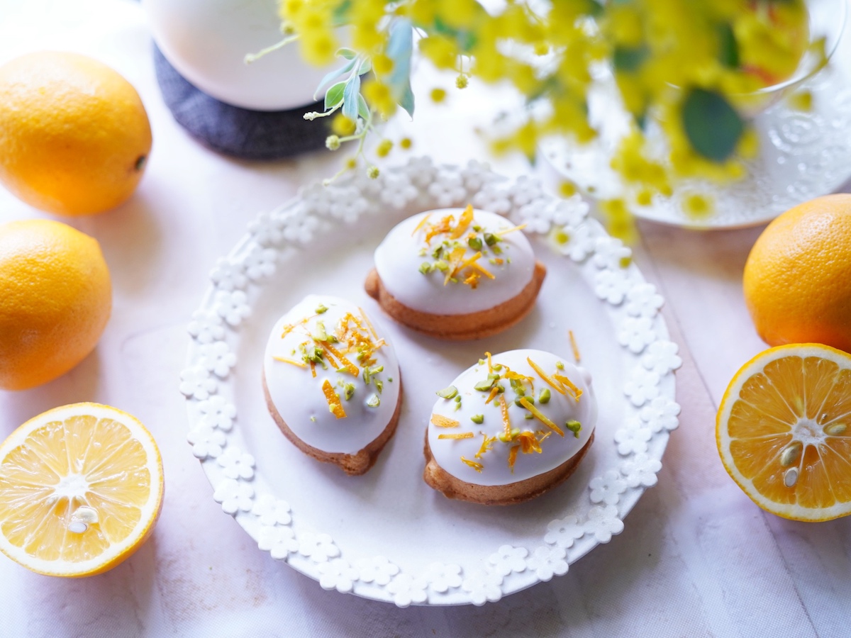 庭のミモザが満開になり、春もすぐそこまで迫っています。3月は、ホワイトデーや卒業式、出会いや別れの多い季節です。今回は、果汁たっぷりで甘い、マイヤーレモンを使って、贈り物にもぴったりなレモンケーキを作りました。ぷっくりころんとした形がかわいいレモンケーキ、ひとつから買える型や、安価なシリコン型も見かけるようになり、チャレンジしやすいと思います。溶かしバターを使うので、作業も簡単。しっとり、歯切れのよい生地がおいしいレモンケーキ、自宅で作ってみませんか?