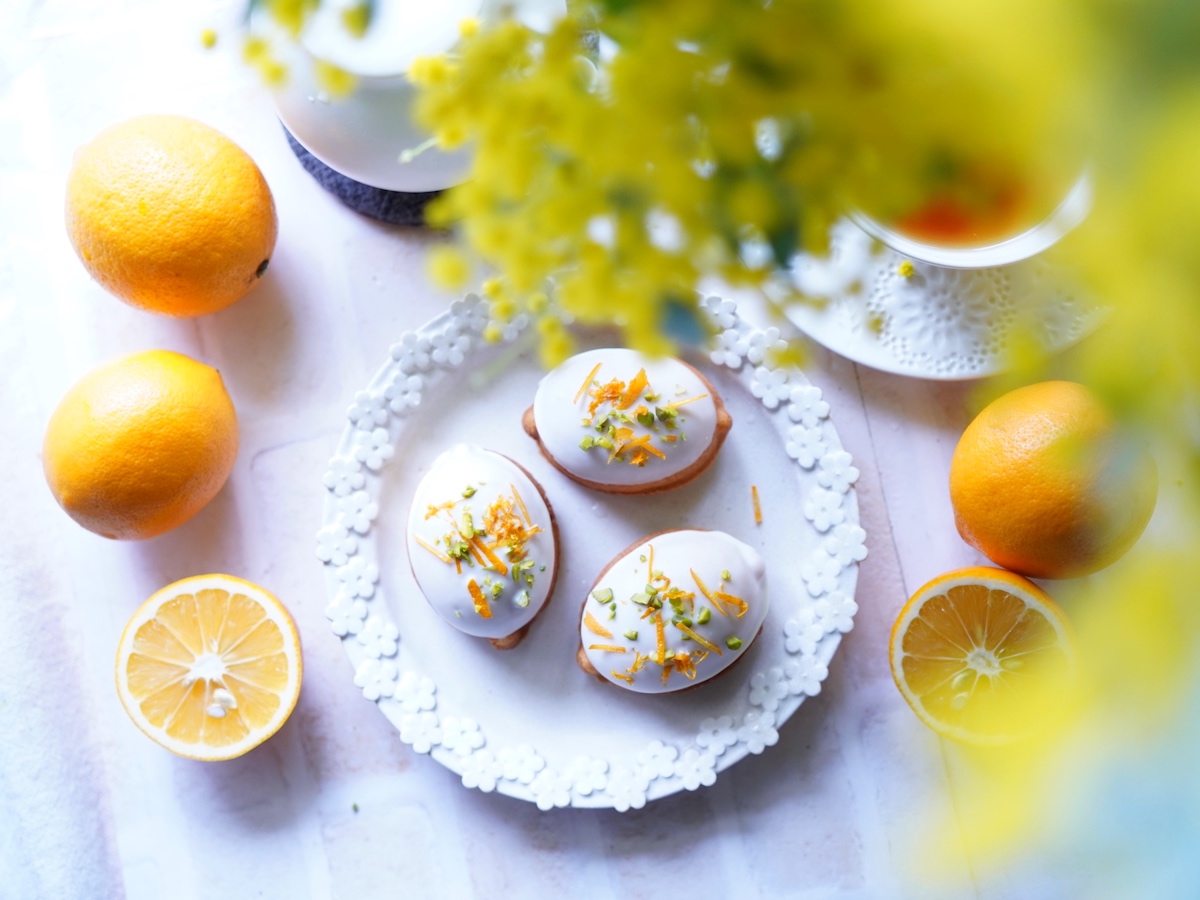 ホワイトチョコレートのトッピングもかわいくておいしいのですが、きゅんと酸っぱいレモンのアイシングも外せません。
