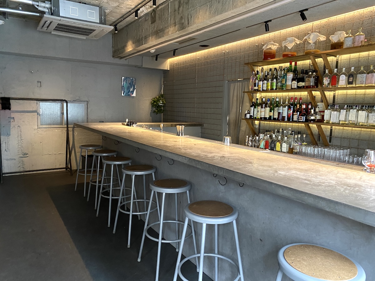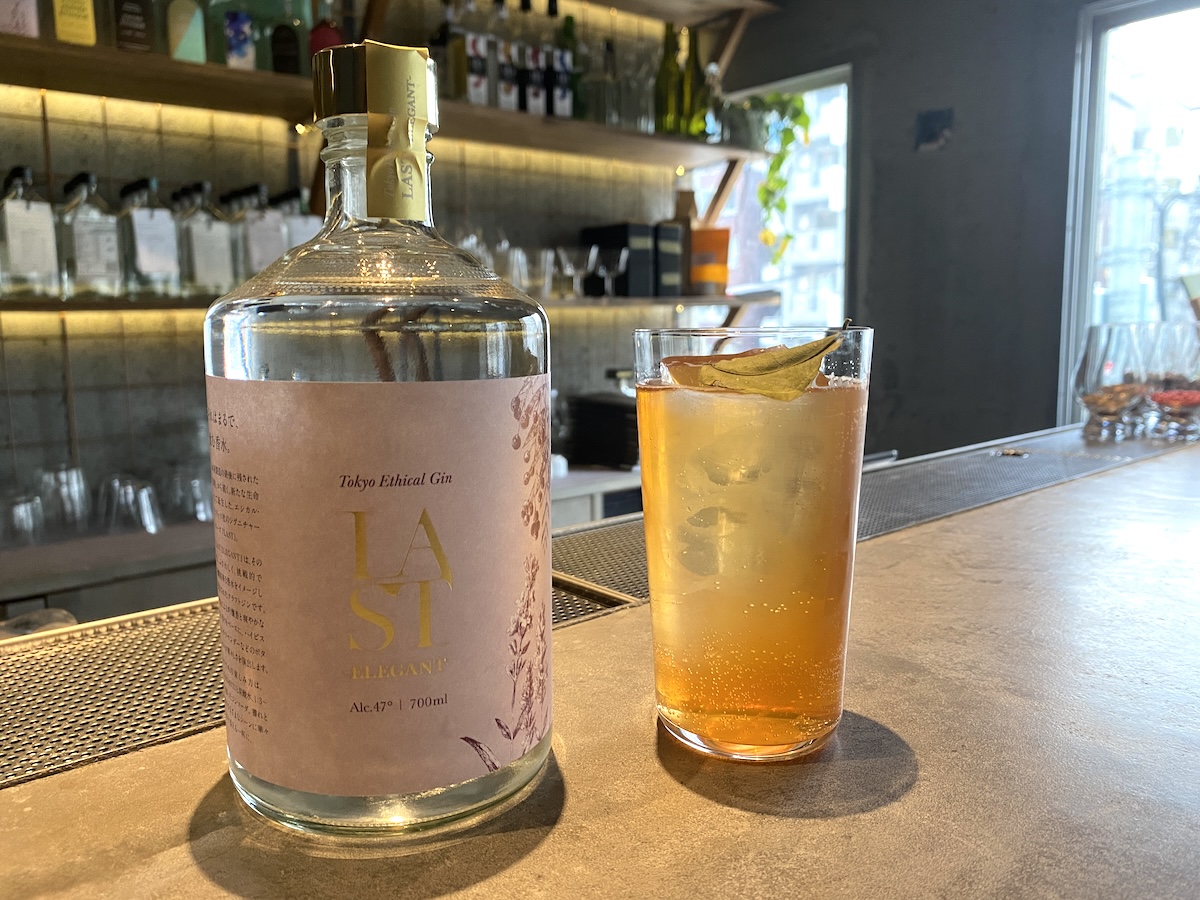 カウンターの奥には世界初の再生型蒸留所「東京リバーサイド蒸留所」があり、酒かすやカカオの皮、規格外となってしまった柑橘などさまざまな未活用素材を使用してジン作りをしているそう。タイミングが合えば、作業風景を見られるかもしれません。