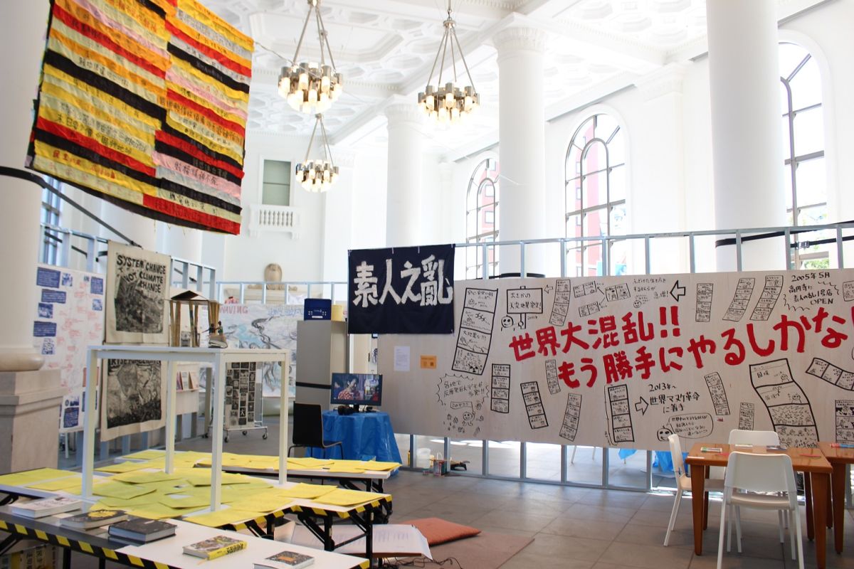 「旧第一銀行横浜支店」のレトロで美しい建物の中に再現された、台湾での社会運動の一幕。この横浜トリエンナーレならではの光景に心がざわつきつつ、自分が生きていない時代や環境に思いを馳せました。