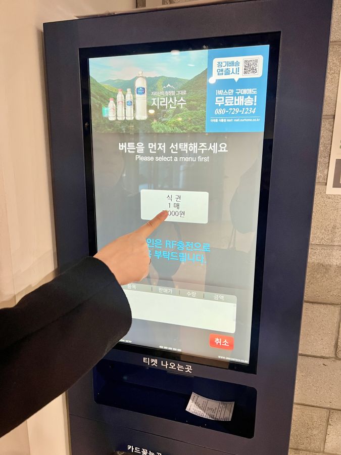 食堂に入る前に、入口脇にある自動発券機で食券を購入しましょう。向かって左側にある食券機が一般客用なので間違わないようにしてください。また、現金決済はできず、カード支払いのみ可能になっているので注意です。