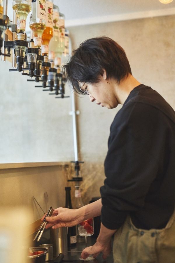 ご主人はもともとブリティッシュパブのバーテンダー。このお店もオープン当初はアルコールメニューがメインだったのですが、昼の営業をスタートしてからはおしゃれなノンアルコールメニューにシフト。「金木犀のレモネード」「葡萄とレモングラスのソーダ」「桃と白ぶどうのフィズ」……とまるで詩のタイトルのような美しい名前のノンアルコールカクテルがメニューに並びます。