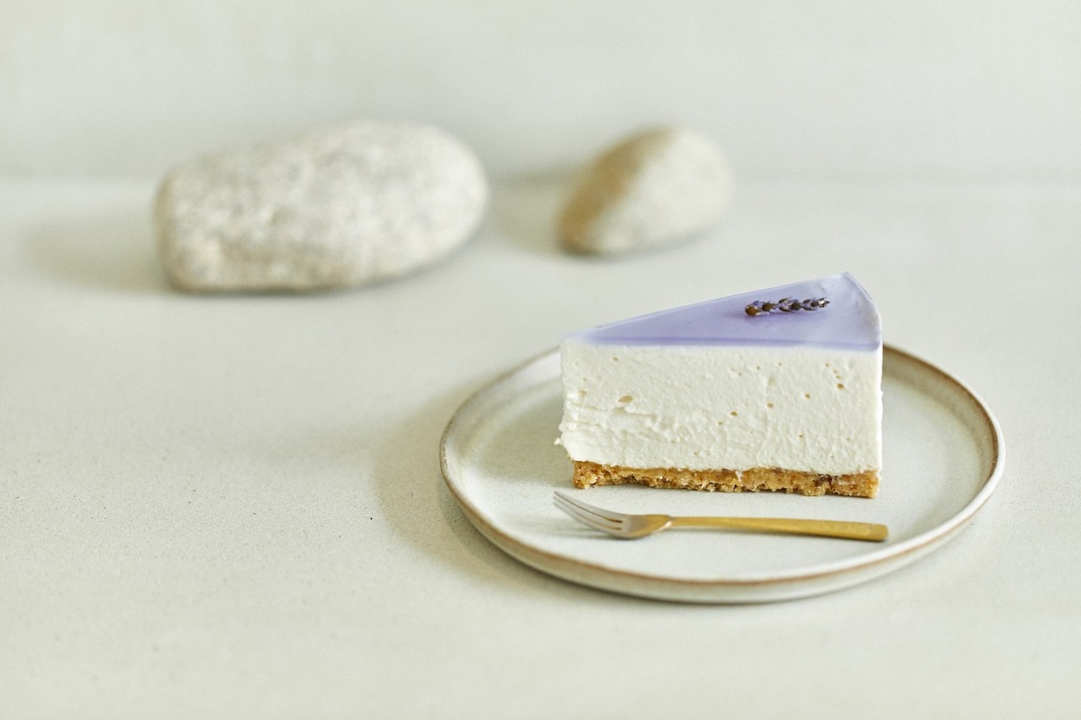 口に運ぶとほんのりとラベンダーの香り。ひんやり冷たいチーズケーキの舌ざわりと爽やかなラベンダーの香りが、たしかにジンベースのすっきりとしたノンアルコールカクテルによく合います。土台のクッキー部分も大豆粉で作っているだけあって、ほろほろと軽いのに、ざくっとした歯ざわりもあっておいしい。とても繊細な大人のデザートです。