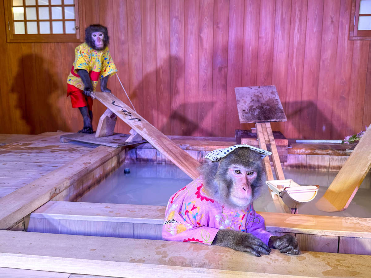 草津の名物といえば、熱い源泉を水で薄めずに冷やす「湯もみ」。湯もみショーは鉄板の観光スポットですが、なんとここは世界初のおさるさんの湯もみショーが楽しめるスポットなんです。