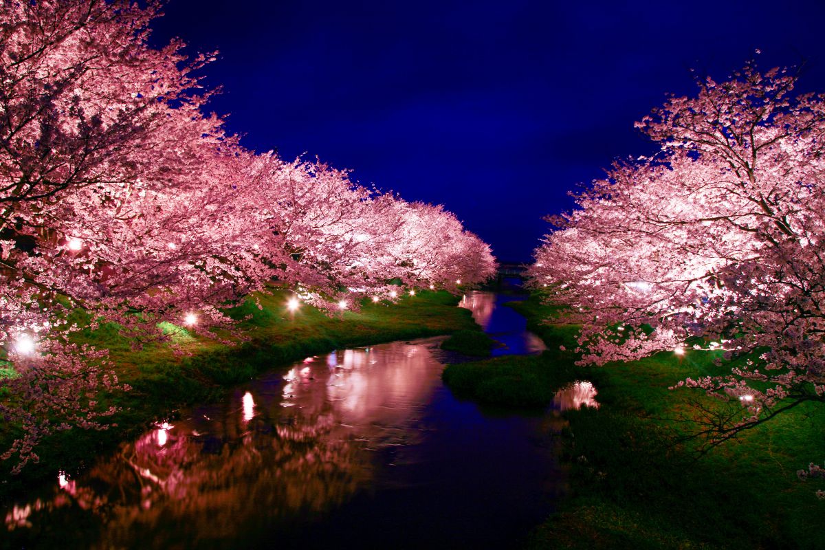 玉造温泉街の中心を流れる玉湯川。春になると両岸2Kmにわたって植えられている約400本の桜の木が一斉に咲き、温泉街を鮮やかに彩ります。