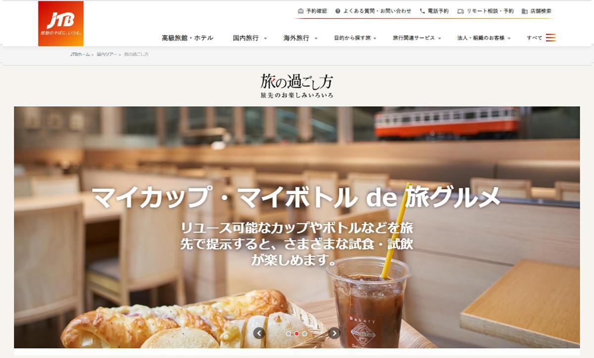 「旅の過ごし方+plus」にはJTBオリジナル「満喫クーポン」だけでなくさまざまなプランがあるんです。「マイカップ・マイボトルde旅グルメ」はリユース可能なカップやボトルを提示すると、さまざまな試飲・試食が楽しめて、なんと0円!