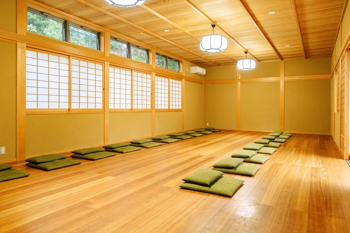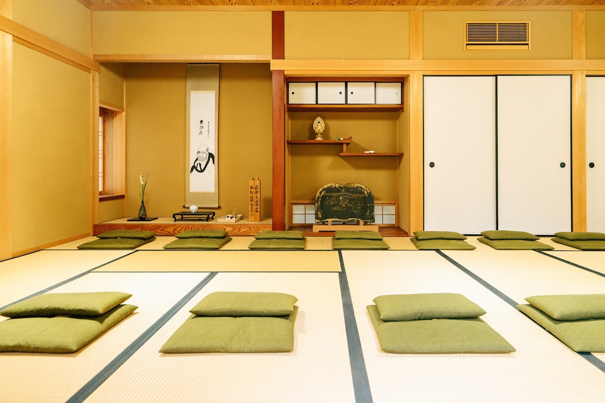 まずは坐禅体験からスタートです。本堂とは別の、体験専用のお堂に案内されました。部屋に入った瞬間に畳や木のいい香りが漂って、気分がぐっと落ち着きます。というのもこちら、2020年に新しく建てられた棟なのです。
