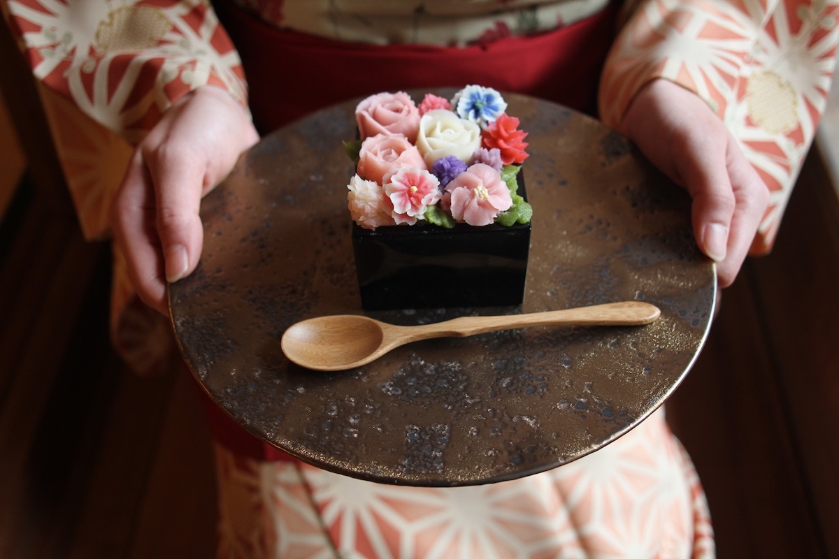 【京都】2023年12月オープン!「茶寮 京都よしつぐ」で庭を眺めながら、かわいすぎる花餡ケーキをいただく
