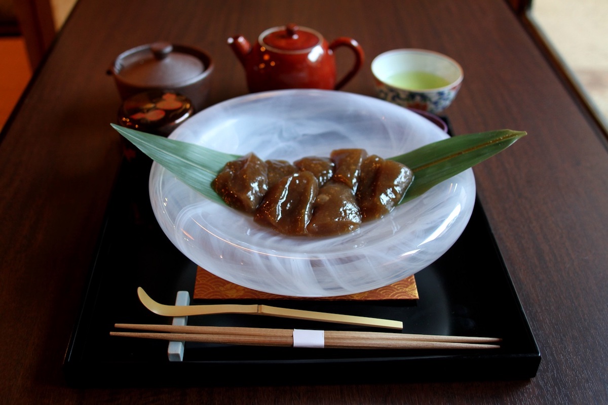 イチオシメニューは、南九州産の本わらび餅粉を100%使用した「十割わらび餅」1815円。粉と水の配合にはとことんこだわったそうで、しっかりとした食感のわらび餅に仕上がっています。