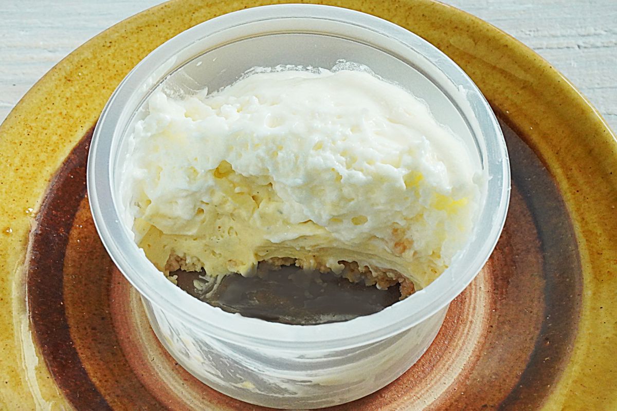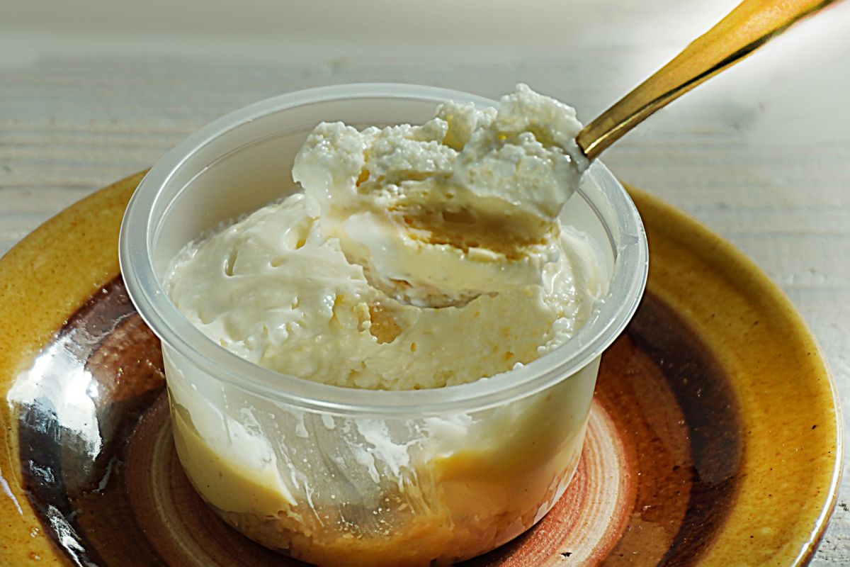カップがやや小さく、一見量が少なく感じますが、チーズの風味が濃厚なので、満足感は大。レアタイプのチーズケーキのなかでも、かなりふわとろ食感になっています。