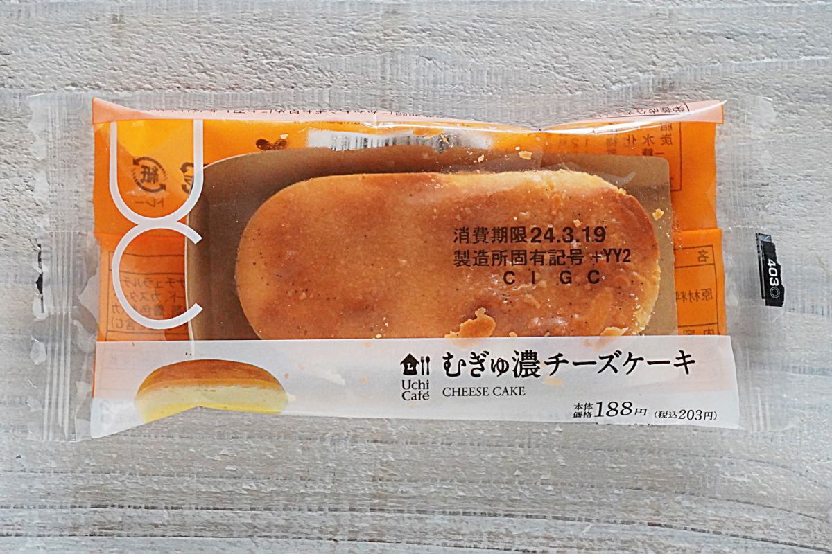 2024年3月12日に新発売された「Uchi Café むぎゅ濃チーズケーキ」203円。