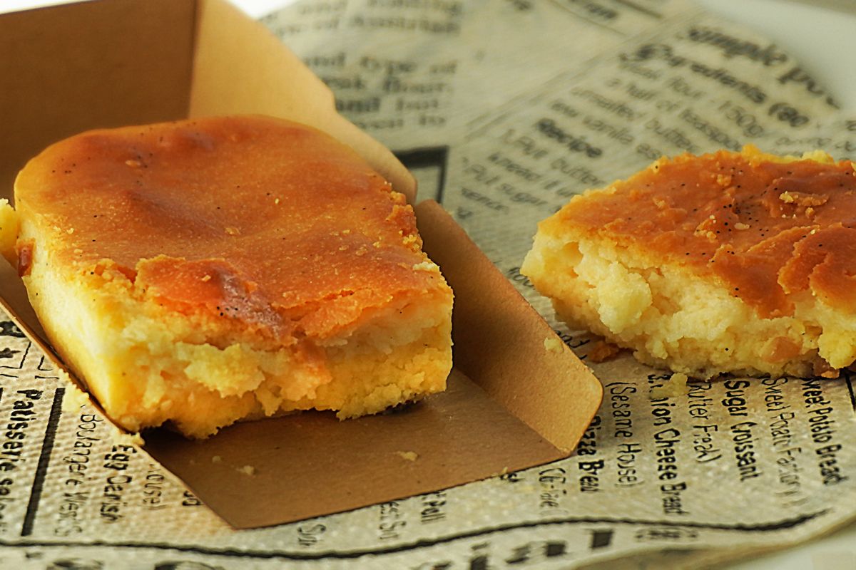 袋から取り出すと、表面が香ばしくきつね色に焼かれたチーズケーキが出てきました。