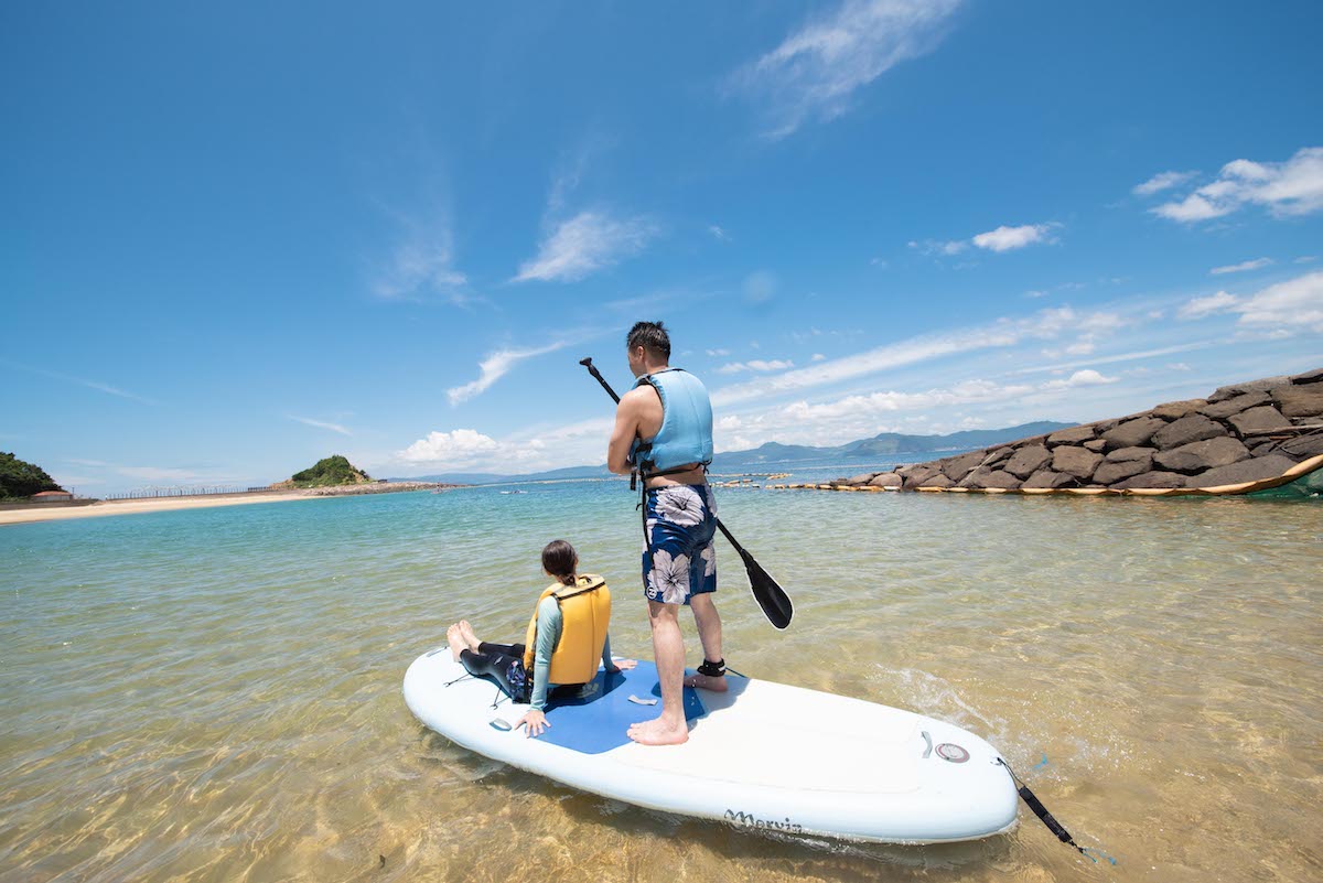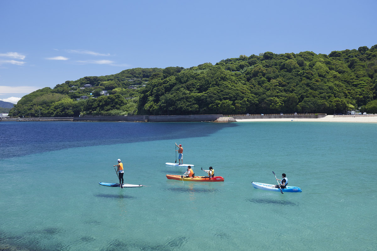 白い砂浜がきれいで、海の水も透明でびっくり!大人気のSUPやカヤックなどはレクチャー付きで初心者でも安心して体験できます。