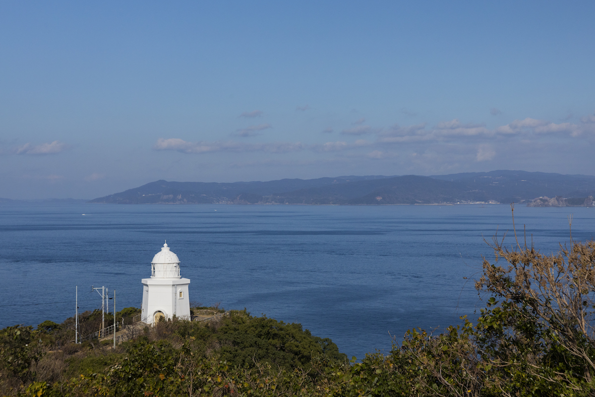 島の北側にある伊王島灯台へ向かう途中にある「岬カフェ」では日本茶でひと休み。島内には「i+Land nagasaki」が運営する5つの無人カフェ“島巡りカフェ”が点在し、セルフで入れるコーヒーや日本茶、ハーブティーなども小さな非日常体験(宿泊者は無料)、目の前に広がる景色を独り占めしながらのティーブレイクは最高でした。「岬カフェ」の営業時間は10時~日没。