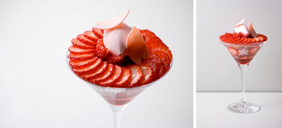 桜の美しさを表現した「桜とあざといちごのパフェ」