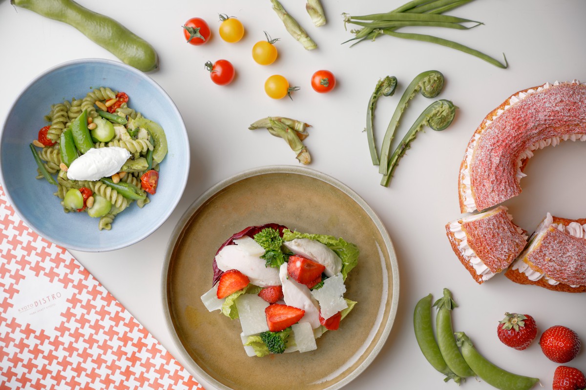 オールデイダイニング「KYOTO BISTRO」で楽しめるのは、桜の季節をお祝いするコースメニュー。都の情趣を味わう絶好のロケーションで、春の食材をふんだんに取り入れた、ヘルシーで心華やぐ春のメニューが味わえます。