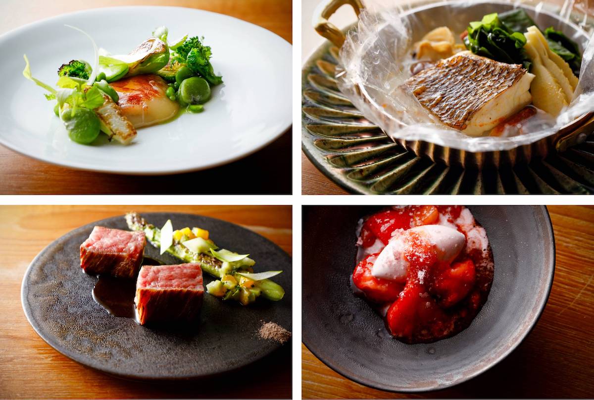 「桜鯛のパピヨット 鳴門産わかめ 蛤 筍 チョリソー オリーブ」は、花見鯛とよばれる桜の時季にぴったりの栄養満点の桜鯛がメイン。小山料理長のシグネチャーディッシュ「パピヨット」が春のスタイルで登場します。素材のうま味たっぷりのスープは魅惑のおいしさ。