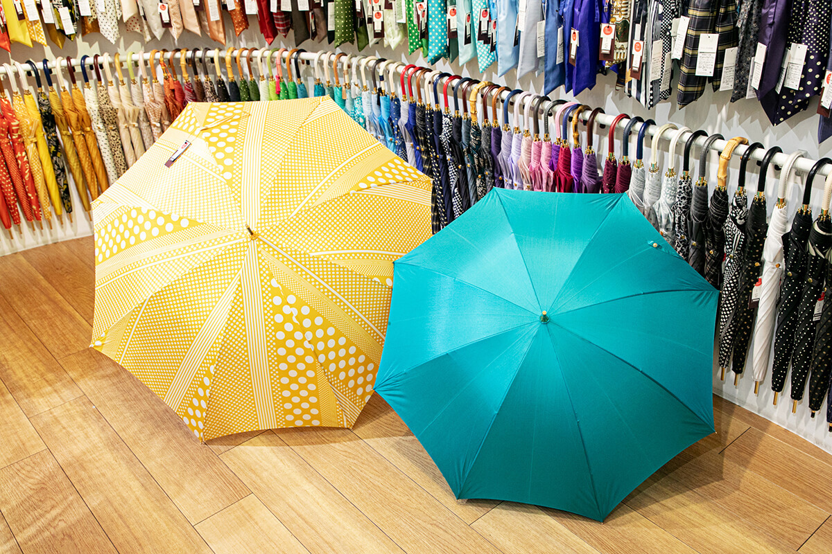 まず、ずらりと並ぶ傘から自分の気になる色や柄を選びます。季節によって、人気の色の傾向が異なるそうです。印象的な色柄も気になりますが、何にでも合わせられるシックなものもいいなあ…。つい迷ってしまいますが、自分の好みに向き合える有意義な時間です。