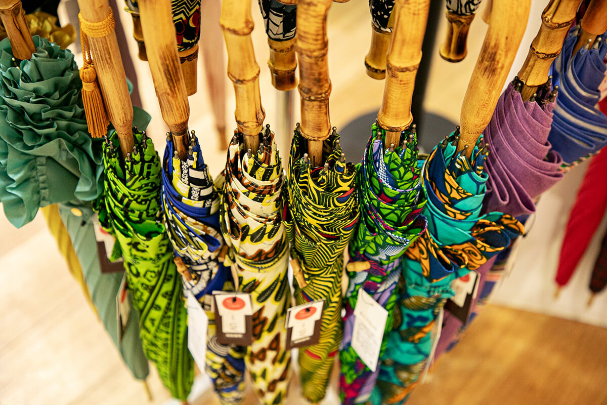 アフリカン布で作られている傘(1万3200円)も人気だそう。シンプルな洋服なときのワンポイントとしてコーディネートできたら素敵ですよね。こちらも日傘として使うことができます。