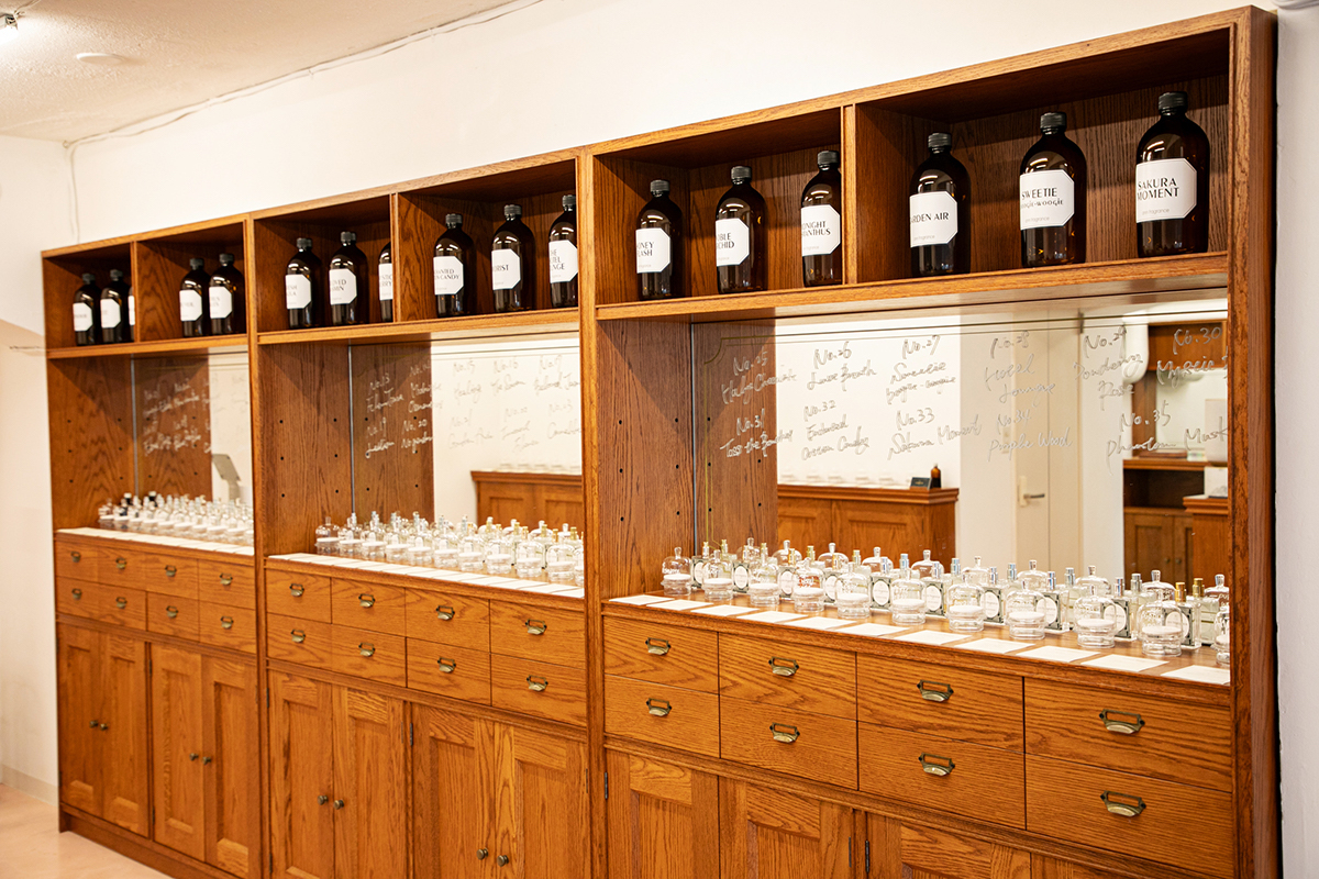 圧巻!35種類ものオリジナルの香りがずらり。まずは好きな香りを選ぶ