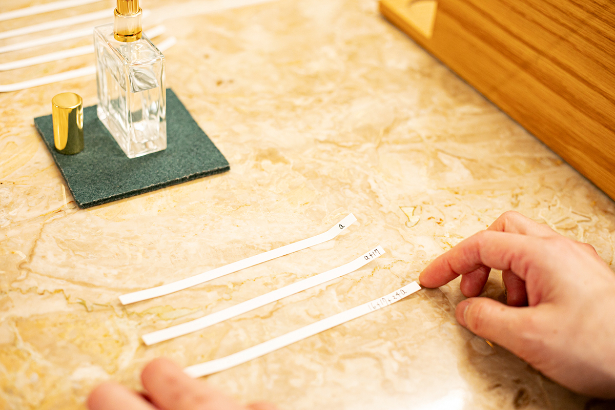 香りをたくさん嗅いでいくと、自分はどの香りが好きなのか分からなくなってくることも。だからこそ直感で「好き!」と思った香りは、すべてチェックしていきます。