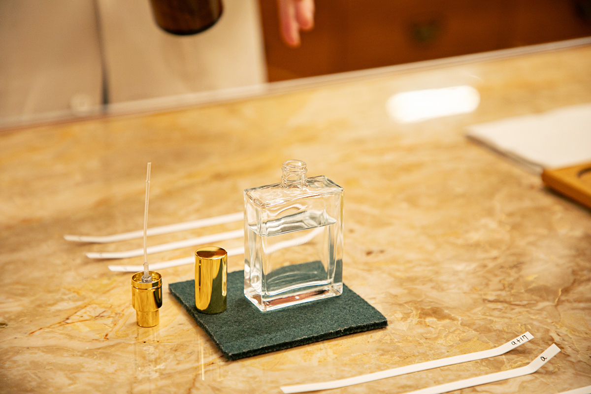 調合は、すべて調合師が行ってくれます。提案してもらえる香りを嗅ぎながら「もう少しすっきりしたほうがいい」など好みを伝えていくと、調合を変えてさらに提案してもらえます。ここでは遠慮せずに、何度もリクエストして大丈夫だそう。